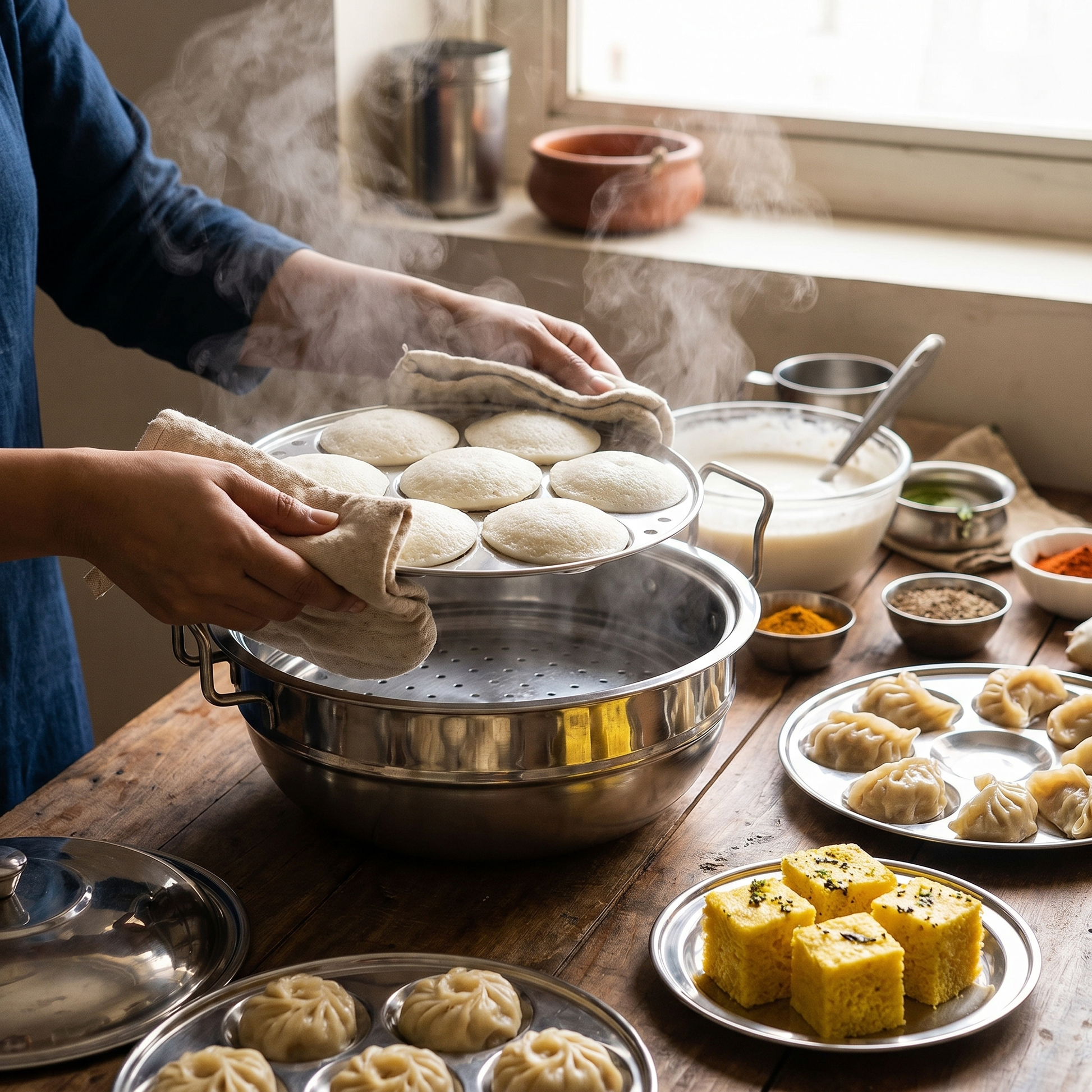 Elevate your culinary skills with a multi-purpose tool that replaces five bulky appliances. From fluffy idlis and soft dhoklas to steaming fresh momos or deep frying, the Maven Multi-Kadai is designed for performance, durability, and style.